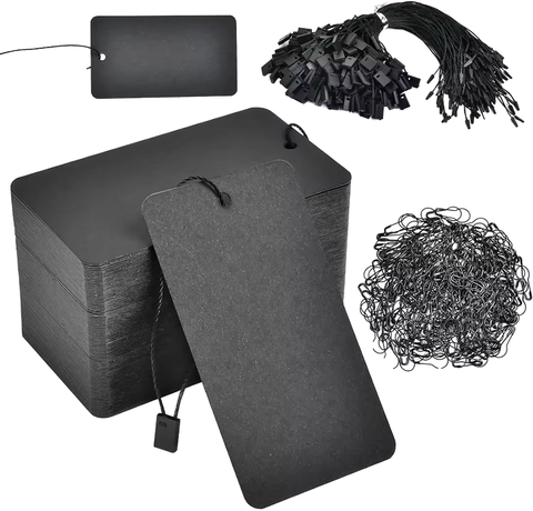 Etiquetas colgantes de papel de etiqueta de precio con logotipo personalizado negro de doble capa ecológico para bolsos de ropa zapatos